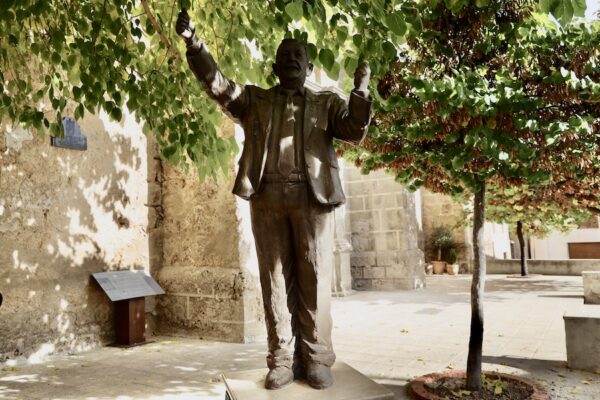 Justo al lado de la Iglesia Catedralicia de Santa María de la Quinta Angustia hay colocado una escultura en bronce de Jesús Martínez Mateos, director de la banda de música de Puebla de Don Fadrique. Aquí vimos una placa con el siguiente texto: “Donde la música suena, allí me encontrarán”, el 14 de agosto de 2023, Puebla de Don Fadrique.