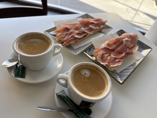 Desayunamos en la Cafetería El Convento Puebla, donde pedimos dos cafés con leche, uno de ellos con leche de almendra y dos medias tostadas de jamón serrano con tomate. Pagamos un total de 10 €. Aceptan pagos en efectivo y con tarjeta de crédito. ☎️ El teléfono es: (+34)678764674.⏱ Abierto de 9:00 h a 24:00 h, los sábados y domingos de 10:00 h a 24:00 h. 📬 La dirección es Plaza Santas Mártires, 5, 18820, Puebla de Don Fadrique, Granada.