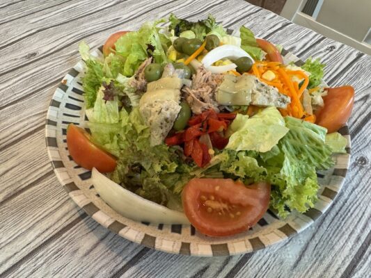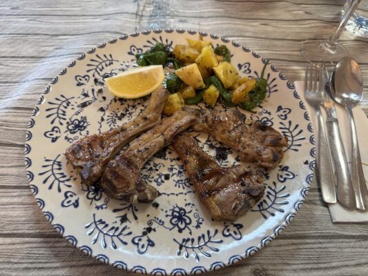 Almorzamos en el Hotel Restaurante Puerta de Andalucía, pedimos como entrantes una ensalada especial de la casa y un revuelto de espárragos verdes y ajetes con gambas y jamón, de plato principal para uno fue una paletilla de cordero segureño al horno de leña y para el otro unas chuletas de cordero segureño a la brasa. De bebida una botella de agua mineral sin gas y un refresco. De postre un café con leche y un té. Para personas con intolerancia no dispone de leche sin lactosa, avena o soja. Pagamos un total de 61 €. Aceptan pagos en efectivo y con tarjeta de crédito. ☎️ El teléfono es: (+34)958721340. ⏱ Abierto de 6:00 h a 24:00 h. La web: https://restaurantepuertasdeandalucia.shop 📬 Se encuentra en Avenida De, Av. Dr. García Castillo, 5, 18820, Granada.