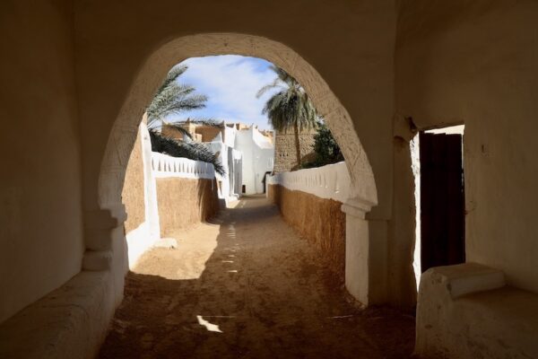 La Ciudad Vieja de Ghadames, su arquitectura es única, adaptada al calor del desierto, con callejones cubiertos para sombra y circulación de aire. Además, fue un importante punto de parada para las caravanas comerciales que cruzaban el Sahara.