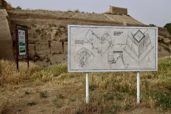 Sarazm su nombre significa “el comienzo de la tierra” atestigua la presencia de asentamientos humanos en Asia Central, desde el cuarto milenio a.C. hasta finales del tercer milenio antes de la era cristiana. El sitio fue abandonado después de la llegada de los indo-iranios, alrededor del año 2000 a.C. No fue hasta el año 1976 cuando se descubrió por un granjero (Ashurali Tailonov) quien halló una daga de cobre que sobresalía de una construcción cercana. Ya en 1977 es cuando comenzaron las excavaciones en el paraje a cargo de Abdullo Isakov y arqueólogos franceses. Considerada una de las primeras aldeas agrícolas de la región. Del lugar han podido tener información sobre las primitivas prácticas agrícolas, la vida comunitaria y la evolución cultural en la zona durante la antigüedad. Ahora es un importante yacimiento arqueológico en Tayikistán, está reconocido como uno de los asentamientos más antiguos de Asia Central y desde el 2010 es Patrimonio de la Humanidad por la Unesco, fue el primer sitio de la Unesco en Tayikistán. Cuenta con templos de fuego, edificios públicos y residenciales, estructuras de culto y palacios. El área ocupa una superficie de más de cien hectáreas. Ahora Sarazm está dividida en tres secciones principales, cada una está cubierta por un tejado plegado, para así poder preservarla de las lluvias y rayos de sol. Dentro del yacimiento hay un pequeño museo con hallazgos arqueológicos de Sarazm, aunque los más importantes están en el Museo de Dusambé. ¡Bienvenidos a Sarazm!💰 La entrada tiene un valor de 30 TJS por persona (2,83 €).⏱ El horario de visitas de 8:00 h a 18:00 h. 📬 Situada en el distrito de Panjakent, en la provincia de Sughd, cerca de la frontera con Uzbekistán.
