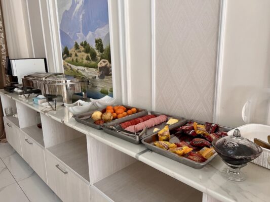 En esta ciudad nos hospedamos en Panjakent Plaza Hotel, establecimiento de tres estrellas, donde pasamos una noche, en alojamiento y desayuno. Entrada disponible las 24 h, salida hasta las 12:00 h. ☎️ El teléfono es: +992487033000. Cuenta con wifi gratuito en todo el hospedaje y aparcamiento gratuito. 📬 Ubicado a 2,7 km del centro de la ciudad, en FHRQ+R4G, Panjakent, Tayikistán.