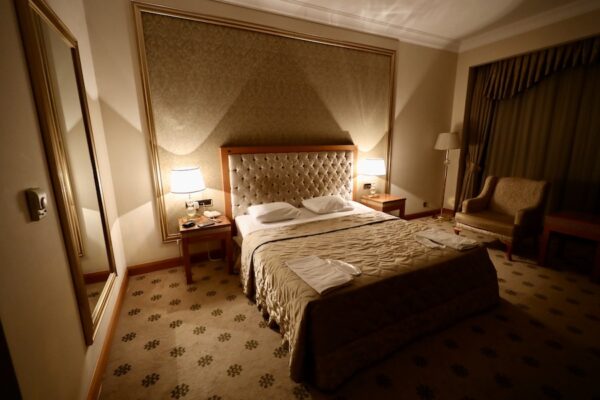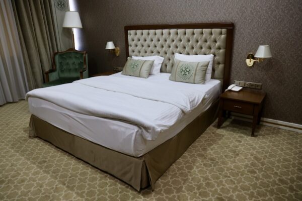 Dashoguz Hotel, hospedaje de tres estrellas donde pasamos una noche en alojamiento+desayuno. ⏱ Entrada a partir de las 12:00 h, salida antes de las 12:00 h. 📬 Se encuentra a 11,1 km del Aeropuerto de Dashoguz, la dirección es 100 Ruhnama street, Dashoguz, Turkmenistan.