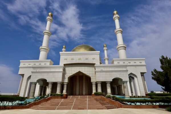 La Mezquita de Gypjak o Mezquita de Türkmenbaşy Ruhy edificada por la compañía francesa Bouygues, en la ciudad natal de Saparmurat Niyazov (fue el primer presidente del estado soberano de Turkmenistán). Quedó inaugurado el 22 de octubre de 2004. Su arquitectura es una muestra de fusión de diseño islámico y turcomano. Construida en mármol blanco, cuenta con una cúpula central dorada, que se eleva a una altura de 55 metros, estando flanqueada por cuatro minaretes que alcanzan los 91 metros, simbolizando el año en que Turkmenistán obtuvo su independencia. Las paredes y los minaretes de la mezquita están adornados con versos de Ruhnama, un libro escrito por el primer presidente de Turkmenistán, Saparmurat Niyazov. El santuario se extiende sobre un área de más de 18.000 m². En su interior puede acoger a 10.000 fieles. El mausoleo que hay junto a la mezquita es el lugar de descanso de Saparmurat Niyazov, fue sepultado en este lugar el 24 de diciembre de 2006. Los no musulmanes pueden ingresar a la mezquita, pero antes tienen que dejar los zapatos en una consigna, son gratuitas. Las mujeres tiene que cubrir la cabeza con un pañuelo. 💰 La entrada es gratuita, aunque piden dejar una donación para el mantenimiento del edificio. 📬 Se encuentra en la villa de Gypjak, a unos 7 km al oeste del centro de Asjabad, Turkmenistán.