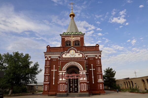 La Iglesia Pokrovskaya también es llamada Iglesia de la Intercesión de la Virgen María, construida alrededor de 1900 por las fuerzas rusas cuando ocuparon la ciudad de Mary en 1884 y la protegieron con una guarnición militar contra los frecuentes ataques de las fuerzas británicas y los ejércitos afganos. Es una Iglesia ortodoxa rusa, edificada con ladrillos rojos y blancos. En el interior, cada muro sobrante está cubierto por iconos enmarcados y otras obras religiosas. En la década de 1930, se cerró, desmantelaron su torre y su cruz. El edificio pasó a ser un club y luego almacén militar. Después de la Segunda Guerra Mundial, en 1947 la iglesia volvió a abrir al culto, aunque las actividades religiosas seguían estando sometidas a un gran control por parte del régimen soviético hasta el colapso de la Unión Soviética.💰El acceso es gratuito. ⏱ Abierta de 8:00 h a 19:00 h. ☎️ El teléfono es: +99352233039. 📬 La dirección es HVW3+XWP, Mary, Turkmenistán.