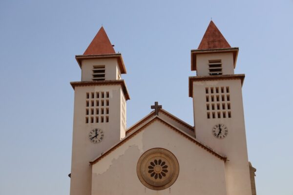 La Catedral de Bisáu (Catedral de Bissau) también llamada Catedral de Nuestra Señora de la Candelaria (Catedral de Nossa Senhora da Candelária), es la principal iglesia católica de Guinea-Bisáu. Sus obras comenzaron en 1945 y quedó finalizada en 1950, remplazando una estructura anterior, de 1935. Presenta un estilo neorrománico moderno, la fachada se caracteriza por dos torres cuadradas simétricas y un rosetón central. En su interior se puede ver la tumba de Settimio Ferrazzetta, el primer obispo de Bisáu, él fue una figura muy importante en la mediación de conflictos durante la guerra civil del país. El templo recibió la visita del Papa Juan Pablo II, el 27 de enero de 1990. La catedral es un punto de encuentro relevante donde la comunidad se reúne para practicar su fe.💰El acceso es gratuito. ⏱Abierta en horario de culto, los sábados de 16:00 h a 19:00 h, los domingos de 8:00 h a 12:00 h. 📬 Se encuentra en la Avenida Amílcar Cabral.