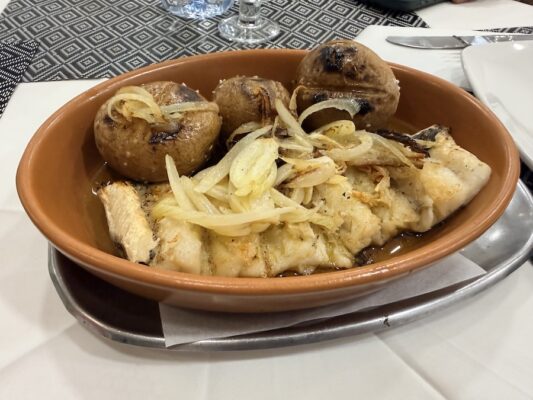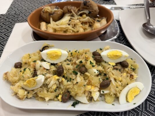Almorzamos en A Padeira Africana, un restaurante de comida portuguesa. Pedimos un bacalhau á Gomes de Sá (bacalao con patatas cocidas, cebolla, huevo duro y aceitunas) y un bacalhau á lagareiro (bacalao al horno con ajo y aceite). Para beber, una botella de agua mineral sin gas y un refresco. De postre, dos cafés: uno solo y otro con leche.💰La comida estaba incluida en nuestro paquete turístico; solo pagamos las bebidas: 3500,00 XOF (5,60 €). ⏱ Abierto de 12:00 h a 23:00 h, permanece cerrado los sábados. ☎️ El teléfono es: +245966131393. 📬 La dirección es VC57+C7H, Bissau, Guinea-Bissau.