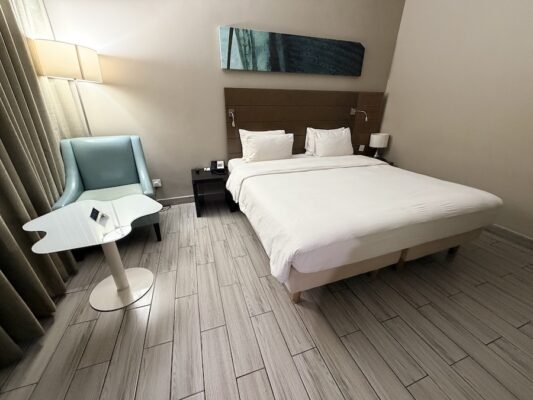 En Freetown nos hospedamos en el Radisson Blu Mammy Yoko Hotel, un establecimiento de cuatro estrellas donde pasamos tres noches. ⏳El horario de entrada es de 15:00 h a 23:30 h y la salida de 7:30 h a 12:30 h. No admiten mascotas. ☎️ Su teléfono es +232 79 45 4000. 🏠 La dirección es 17 Lumley Beach Road, Aberdeen (a 2,9 km del centro).