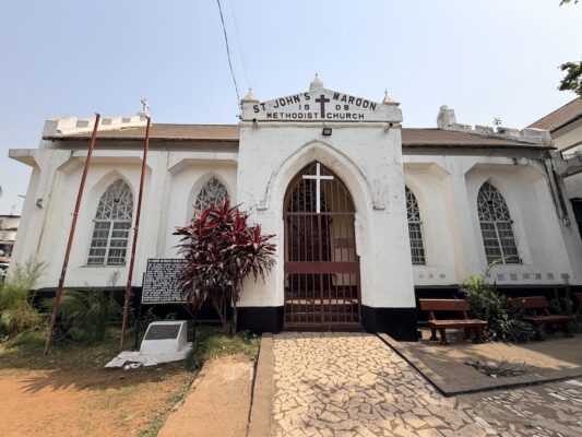 La Iglesia de los Cimarrones de San Juan (St. John’s Maroon Church) es un templo metodista construido entre 1820 y 1822 por la comunidad de cimarrones jamaicanos que se asentó en la colonia en 1800. El edificio destaca por su fachada blanca y su arquitectura colonial. Fue declarado patrimonio nacional en 1956 para asegurar su preservación. 💰 El acceso es gratuito. ☎️ El teléfono es: +232 33 19 04 25. 🏠 Se encuentra en FQP7+889, Freetown, Sierra Leona.