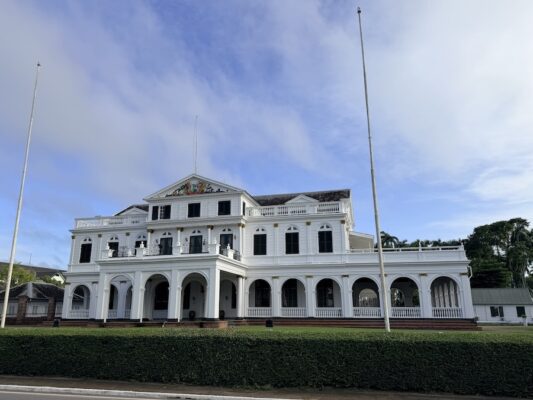 El Palacio Presidencial de Surinam (Presidentieel Paleis van Suriname) es la residencia oficial del presidente de la República. El inmueble, es de estilo barroco neerlandés, fue construido durante la época de la Guayana Neerlandesa. Además de albergar la residencia del presidencial, el edificio se sitúa junto a importantes instituciones como la Asamblea Nacional, el Tribunal de Justicia Nacional y el Ministerio de Finanzas. En su parte trasera se encuentra el Parque Palmentuin. Cabe destacar que el palacio forma parte del centro histórico de Paramaribo, declarado Patrimonio de la Humanidad por la Unesco en 2002. ⏱ Abierto de lunes a viernes de 7:00 h a 15:00 h (cerrado sábados y domingos). ☎️ El teléfono: +597 472 841. La web: https://gov.sr/ministeries/kabinet-van-de-president/president-en-staf/ 📬 La dirección es Onafhankelijkheidsplein 1, Paramaribo, Surinam.