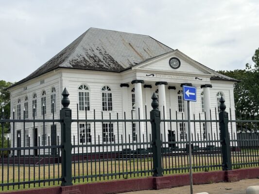 La Sinagoga Neve Shalom (Neve Shalom Synagoge) es un edificio de estilo neoclásico terminado entre de 1842-1843. Sustituyó a una estructura anterior de 1719 construida por judíos asquenazíes y forma parte del Centro Histórico de Paramaribo, declarado Patrimonio de la Humanidad por la Unesco en 2002. 💰 La entrada para turistas requiere una donación. ⏱ Abierta para turistas los lunes, miércoles y jueves de 10:00 h a 14:00 h. ☎️ El teléfono es: +597 472 817. 📬 Está en Wagenweg St. 65, Paramaribo, Surinam.
