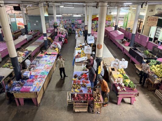 El Mercado Central de Paramaribo (Centrale markt van Paramaribo), edificio de dos plantas. En la planta baja se alberga el mercado de alimentos, donde se venden carnes, pescados, frutas y verduras. La planta superior acoge un mercado minorista donde venden ropa, cigarrillos, artesanía, etc. Es un sitio donde los lugareños y turistas se mezclan en un ambiente animado. Es una experiencia única que te permitirá sumergirte en la auténtica cultura local, interactuar con los vendedores y probar deliciosos sabores tradicionales.💰 El acceso es gratuito. ⏱ Abierto de 6:00 h a 16:00 h, (cerrado domingos). 📬 Está situado a orillas del río Surinam, en RRFR+7FG, Waterside St, Paramaribo, Surinam.