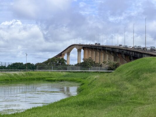 El Puente Jules Wijdenbosch (Jules Wijdenboschbrug), conocido localmente como Bosjebrug, es la infraestructura más emblemática de Surinam. Este cruza al río Surinam y conecta la capital, Paramaribo con la localidad de Meerzorg, en el distrito de Commewijne. Tiene una longitud de 1,5 km y alcanza una altura considerable en su punto central para permitir el paso de buques de gran calado hacia el puerto. ¡Importante! No cuenta con carriles peatonales o ciclistas protegidos, por lo que el cruce se realiza principalmente en vehículo motorizado. Fue inaugurado en el año 2000 y lleva el nombre del entonces presidente Jules Wijdenbosch. ⏱ Abierto 24 horas.